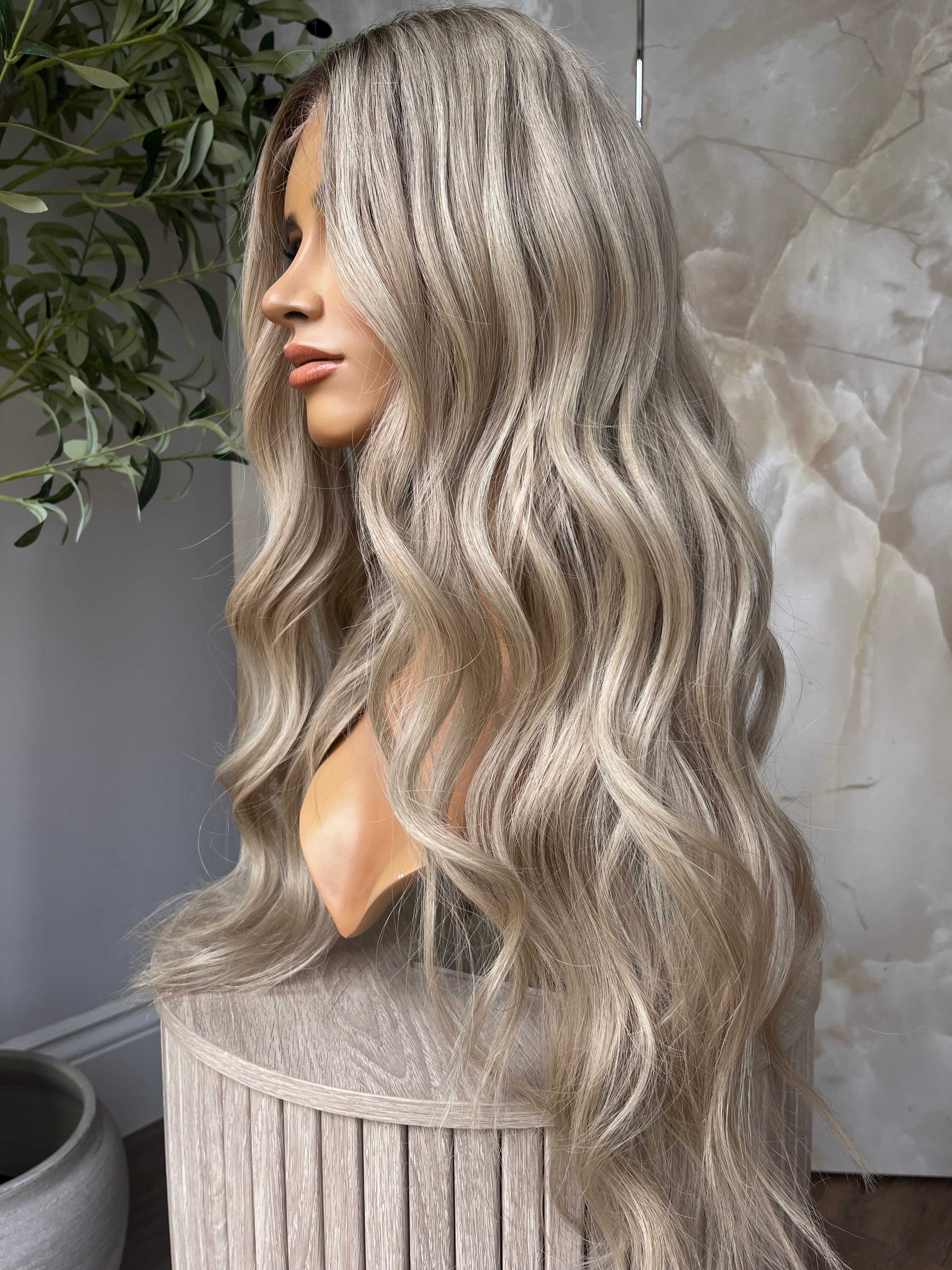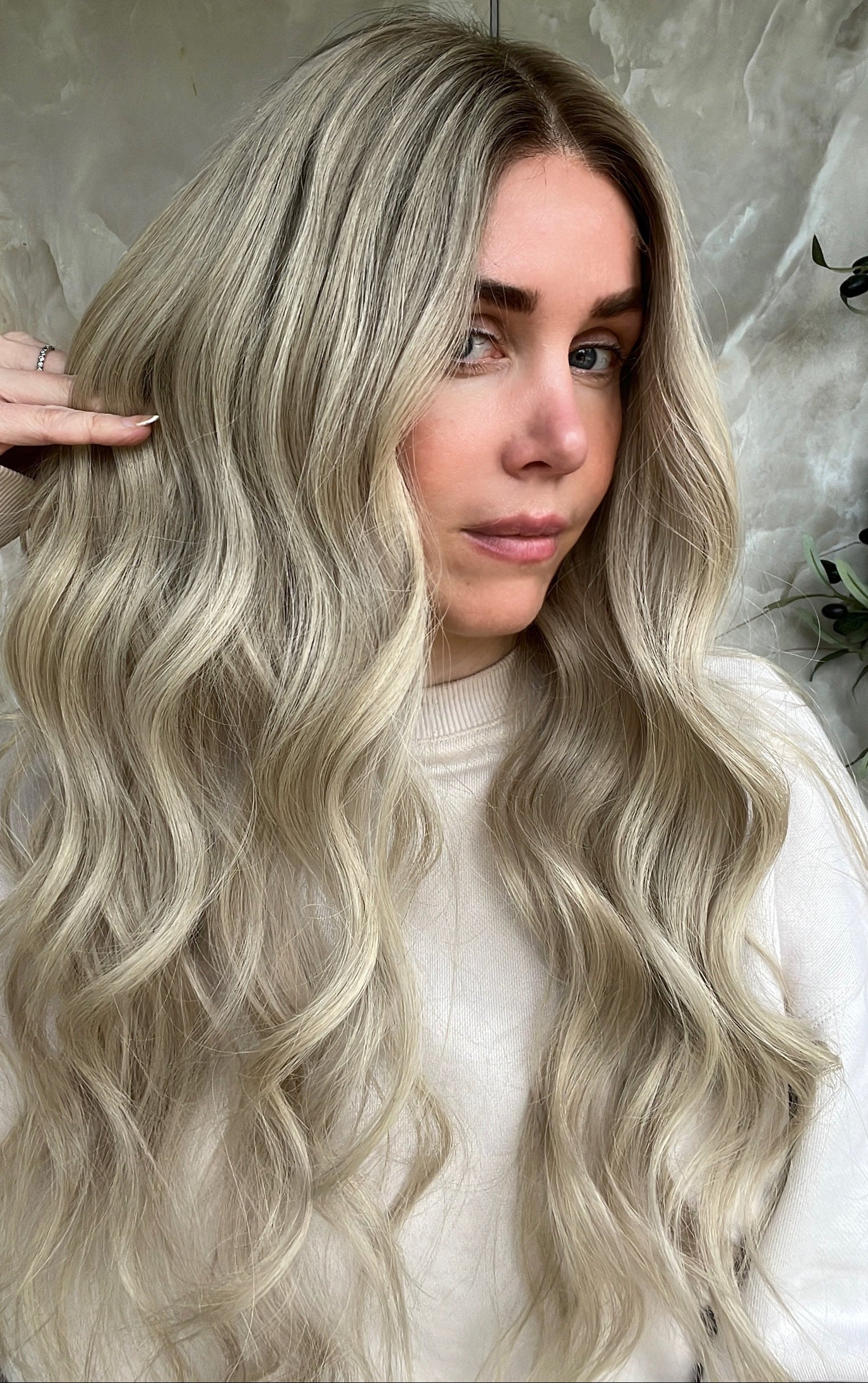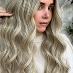 Hair colour - Light brown roots with nude blonde base and highlights