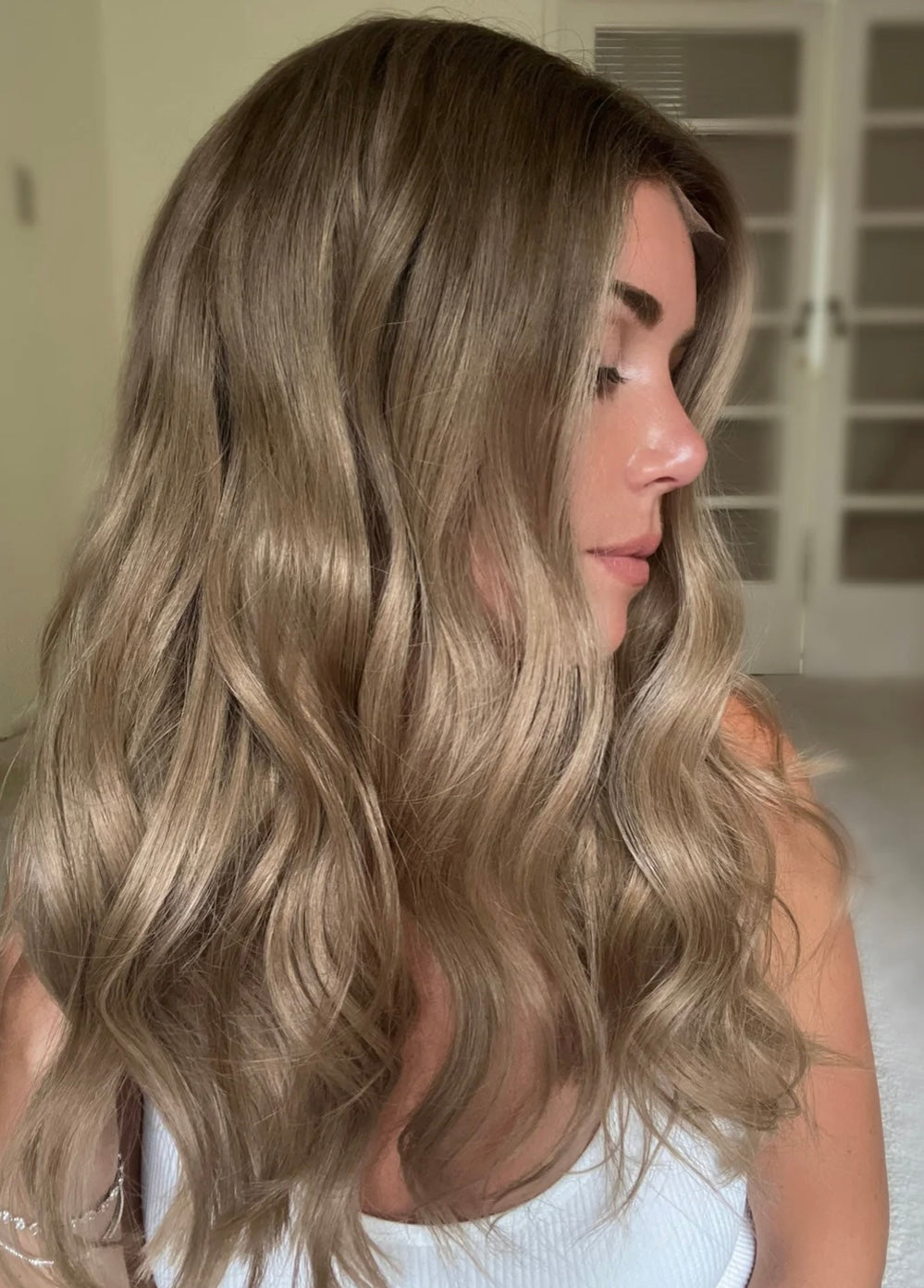 Hair colour - Light cool brown ombré medium blonde with subtle highlights & face framing highlights