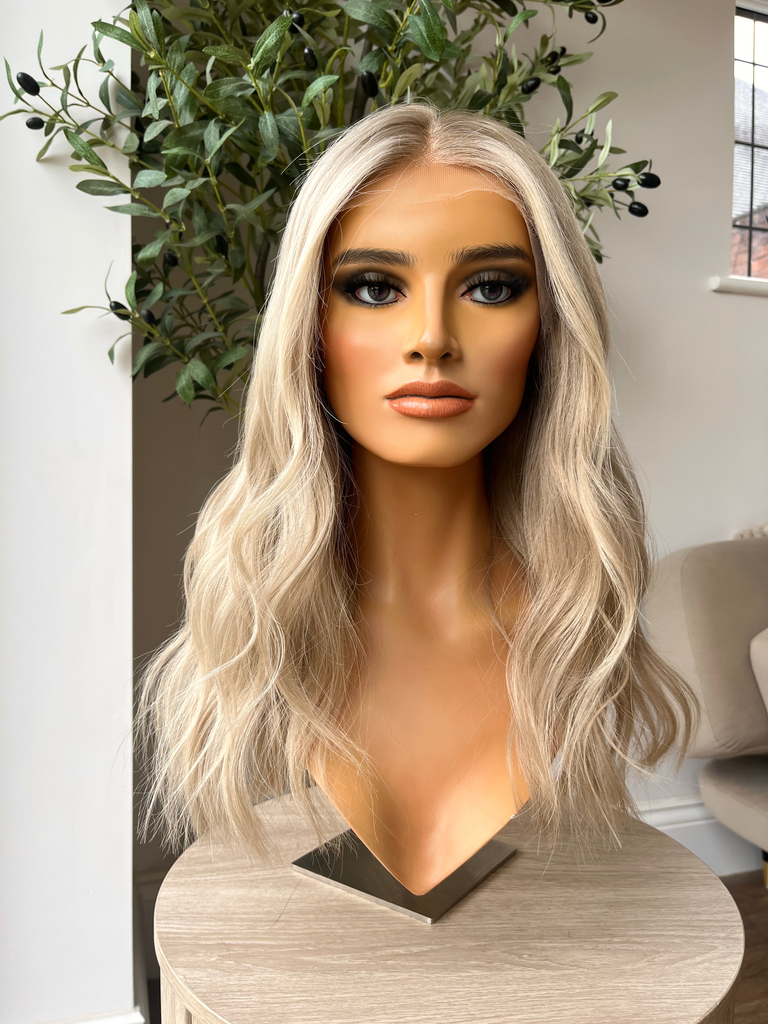 Please note - All of our natural luxury wigs are bespoke and coloured by hand, no two wigs will be the same, We try our best efforts to display the true colour of all our wigs, although due to lighting, phones and computer screens the hair colour will vary.