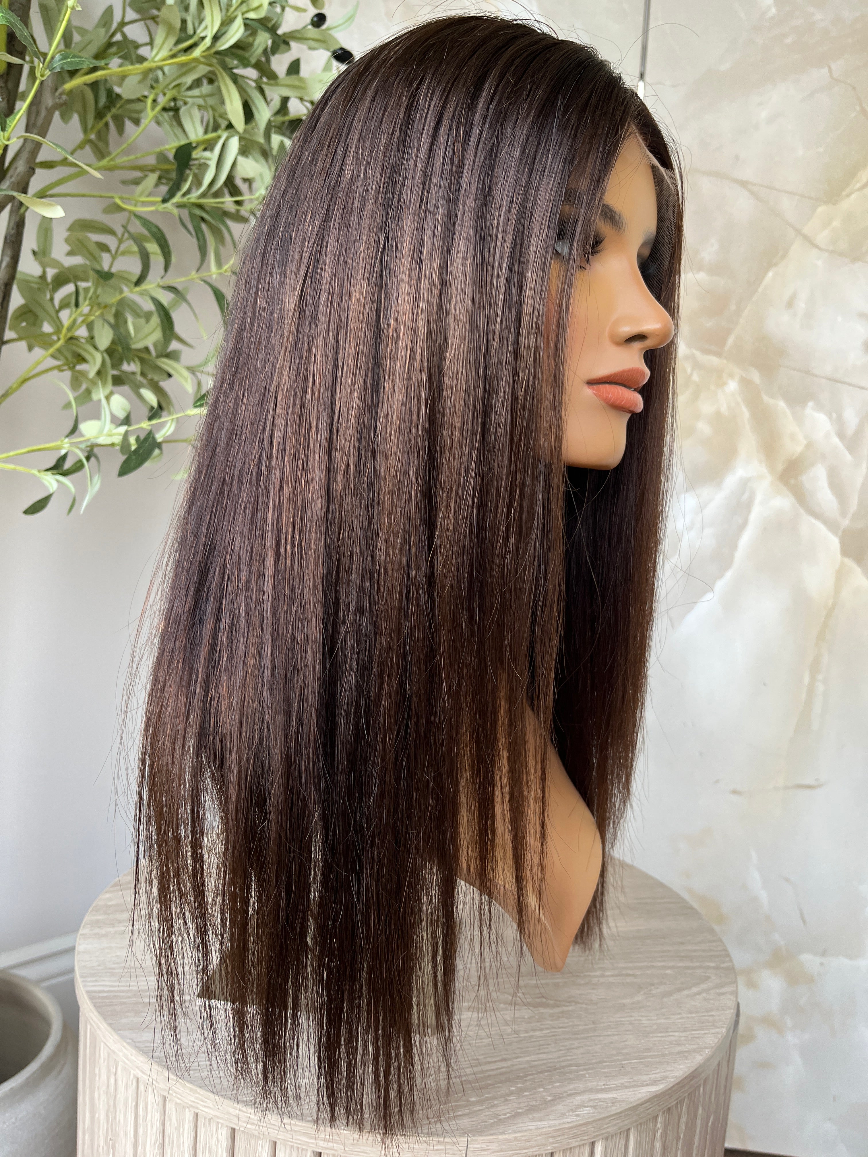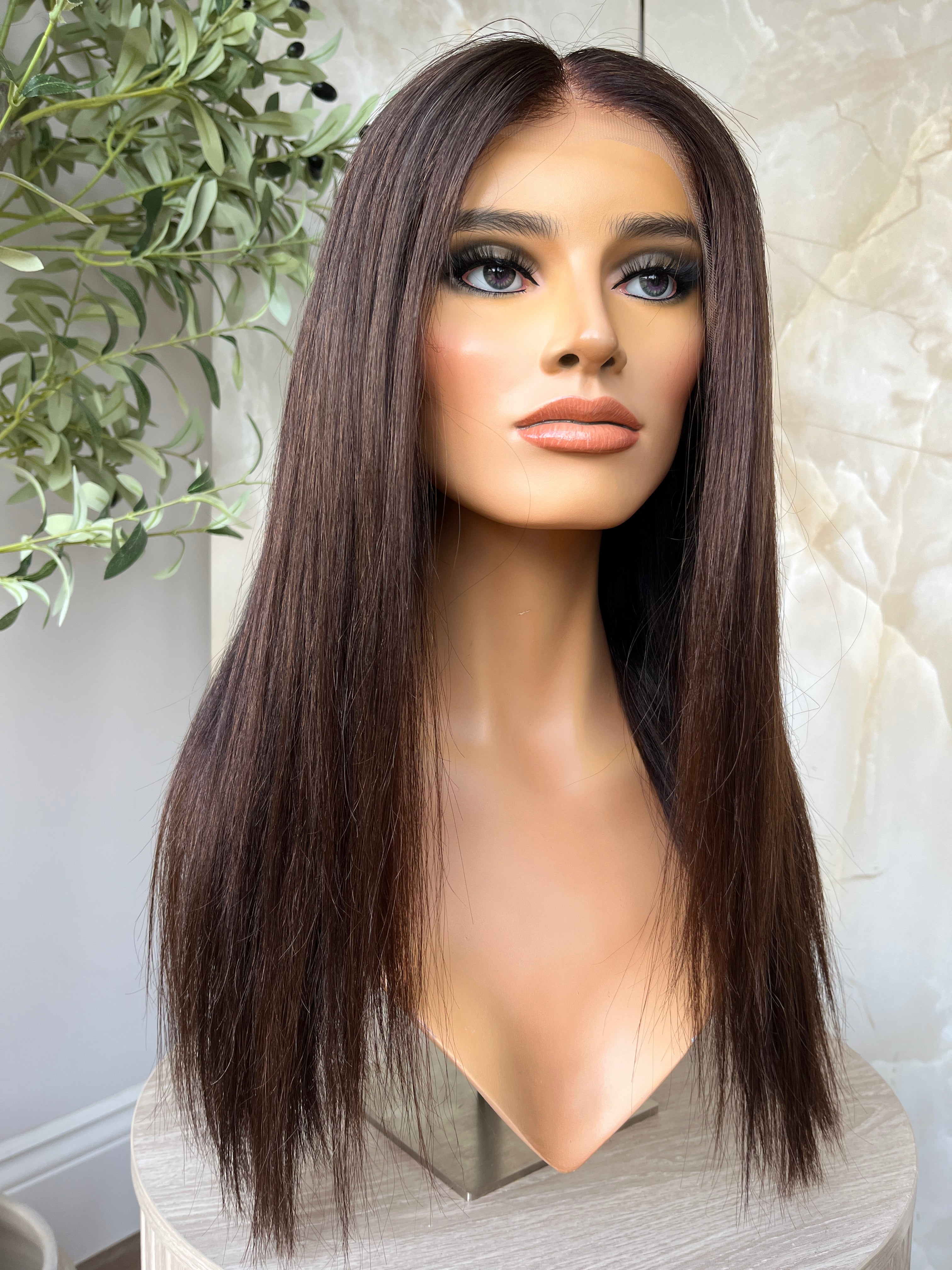 Please note - All of our natural luxury wigs are bespoke and coloured by hand, no two wigs will be the same, We try our best efforts to display the true colour of all our wigs, although due to lighting, phones and computer screens the hair colour will vary.