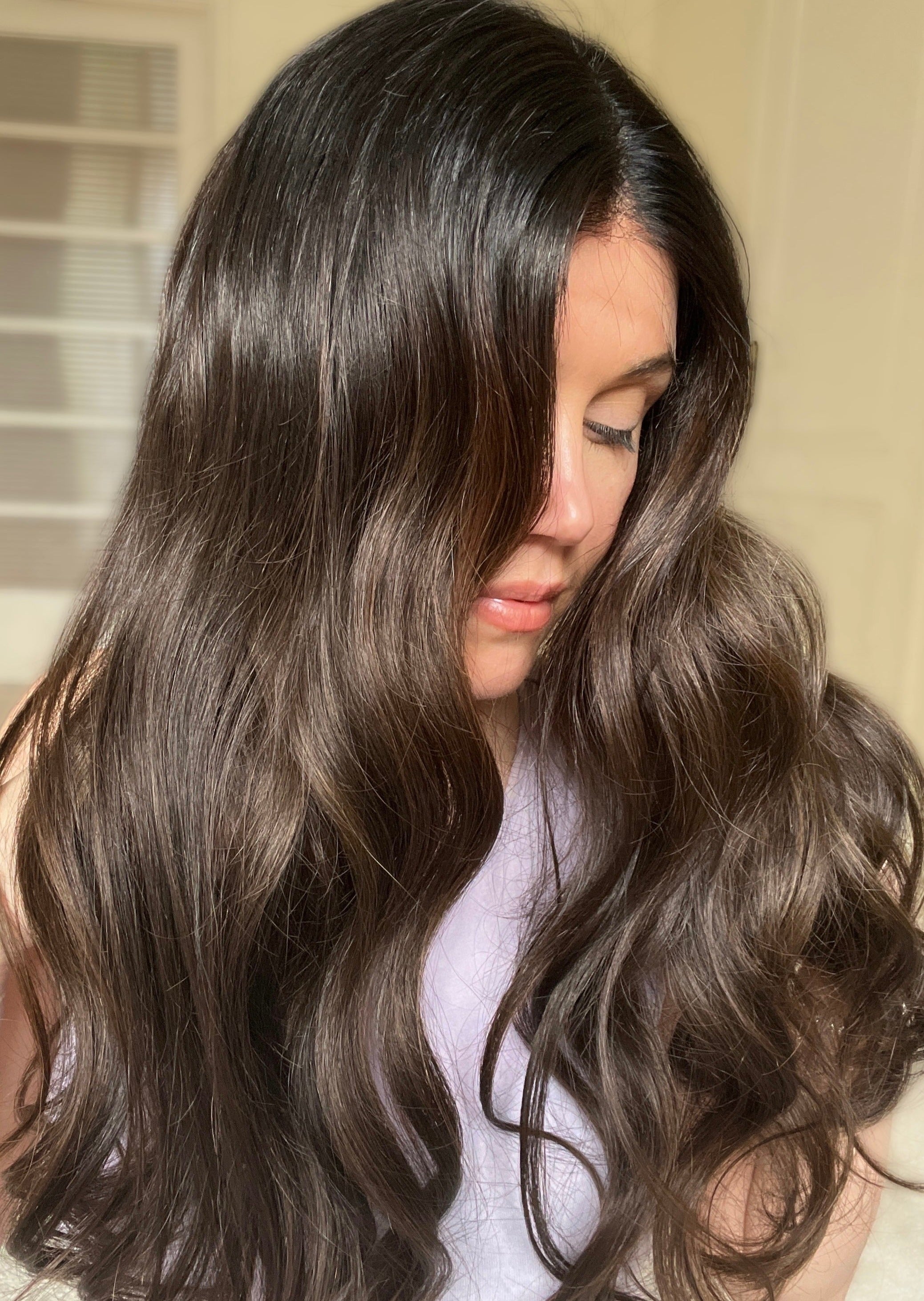 Hair colour - Dark brown ombre medium brown with subtle highlights