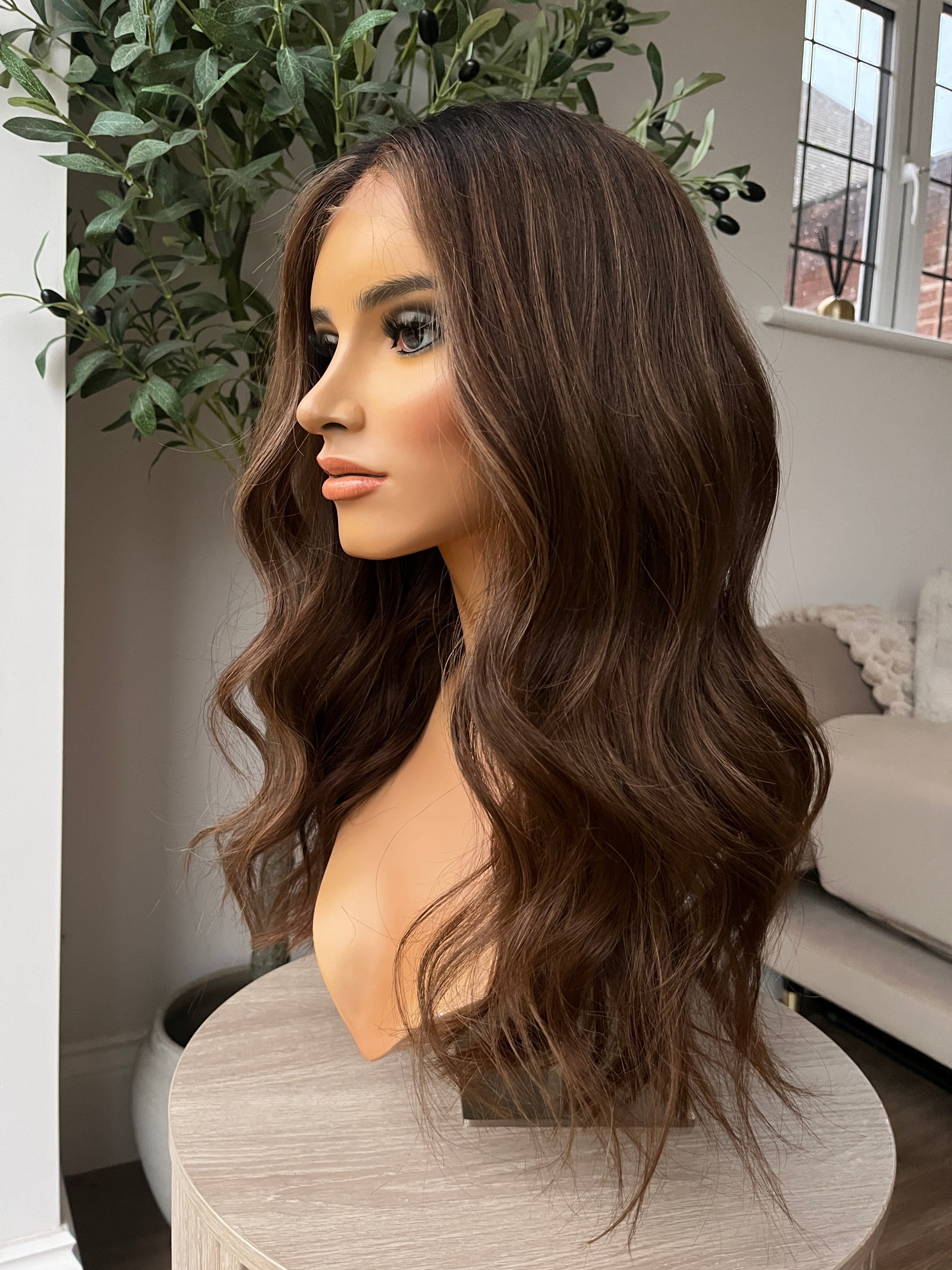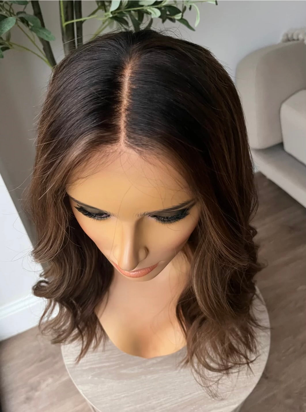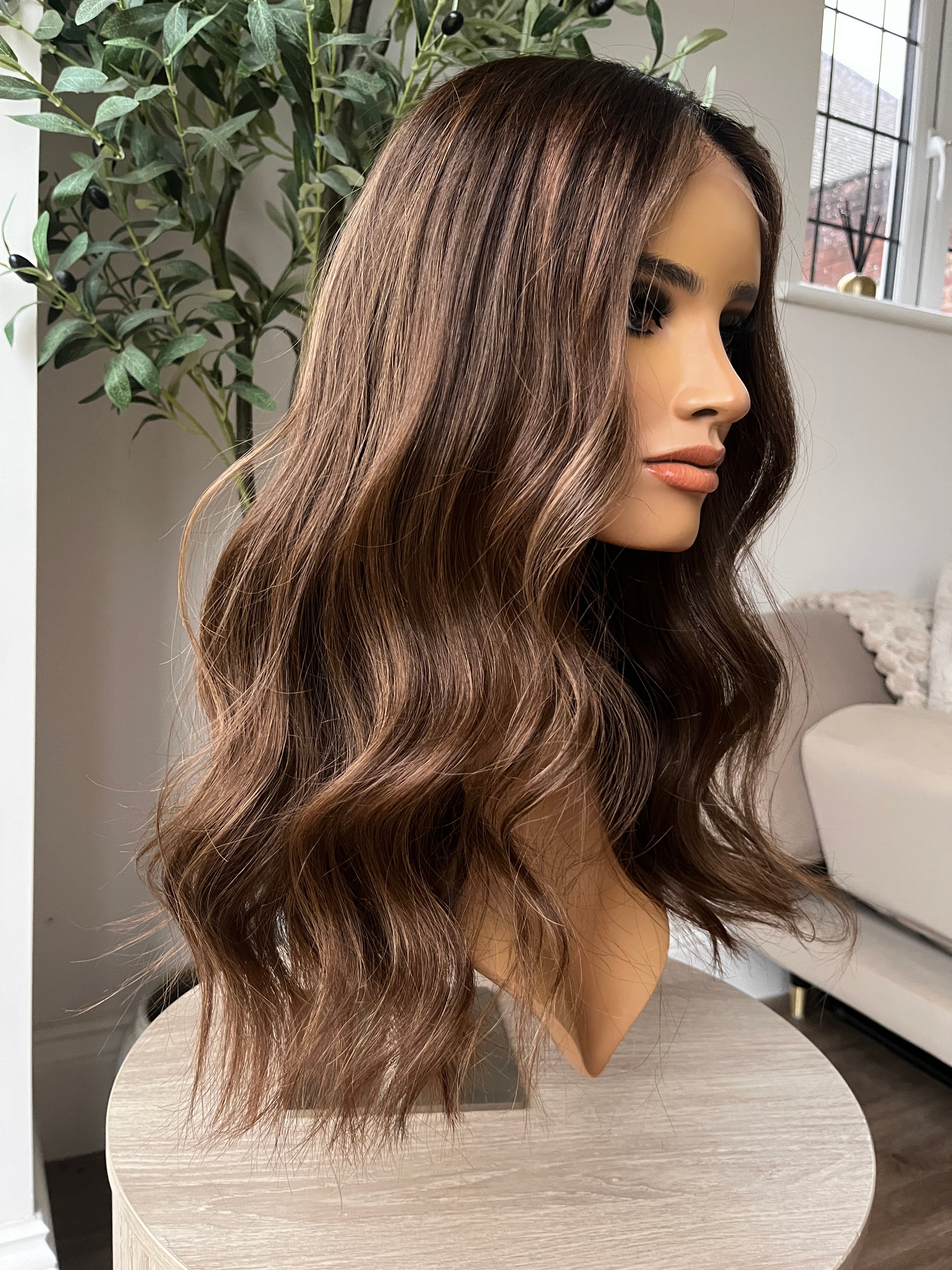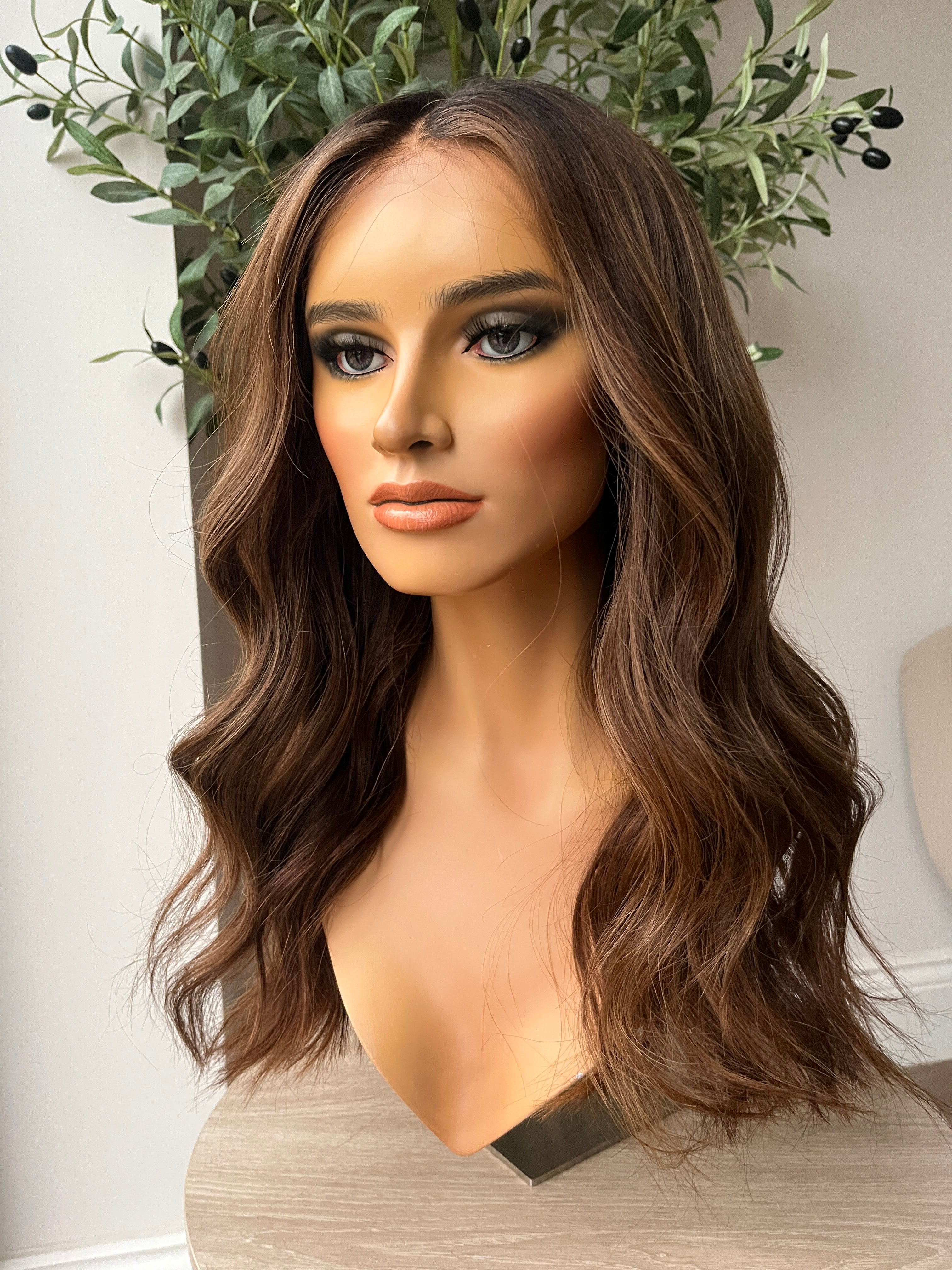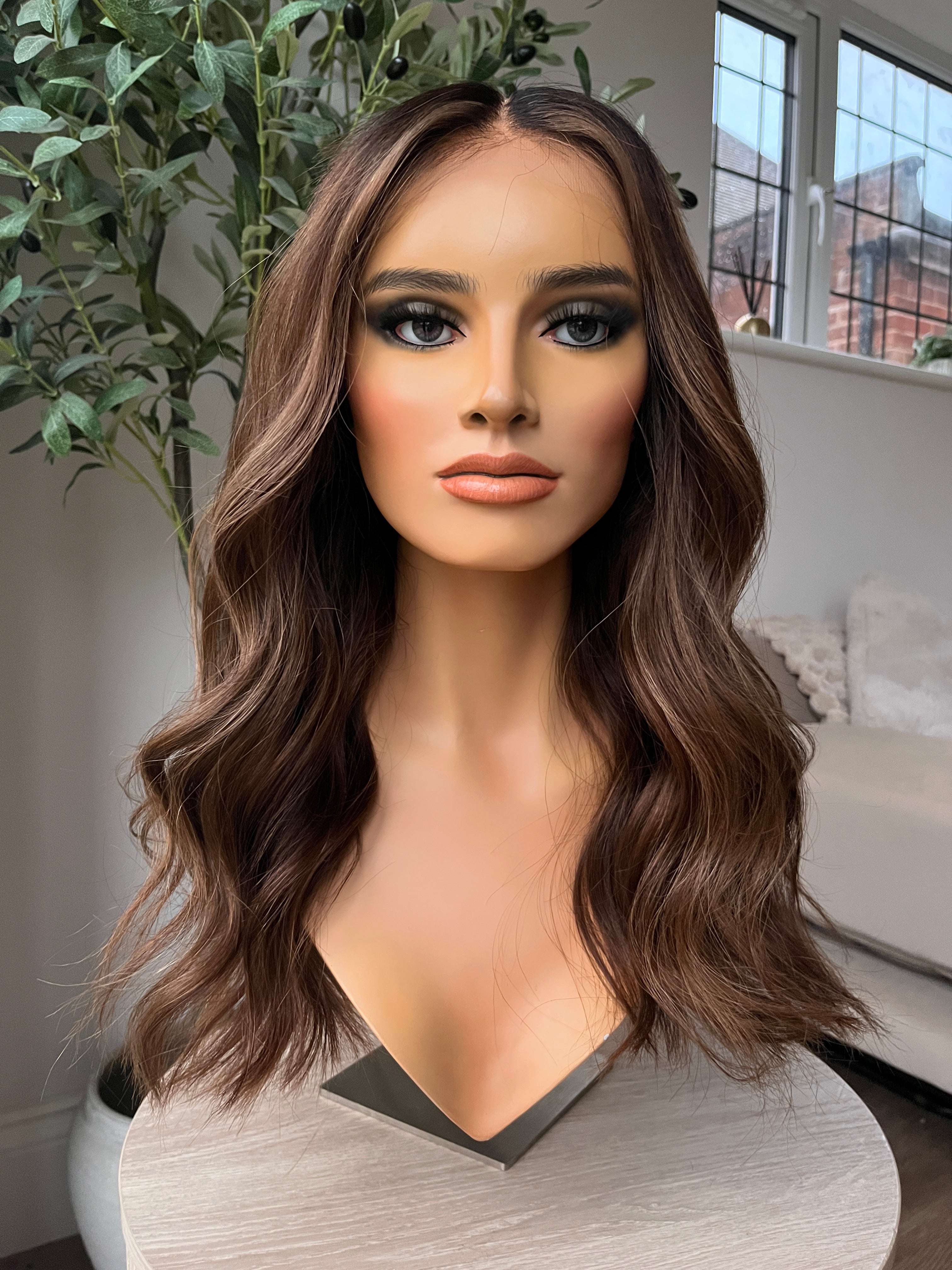 Please note - All of our natural luxury wigs are bespoke and coloured by hand, no two wigs will be the same, We try our best efforts to display the true colour of all our wigs, although due to lighting, phones and computer screens the hair colour will vary.
